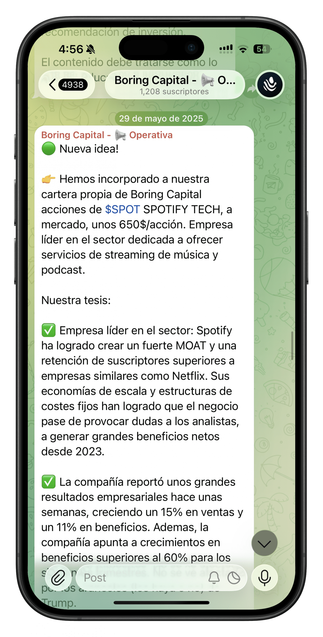 A través de nuestro canal de telegram principal compartimos qué valores estamos comprando a modo de ideas, acompañadas de un análisis y un seguimiento.